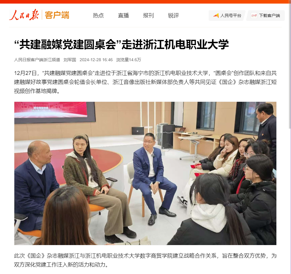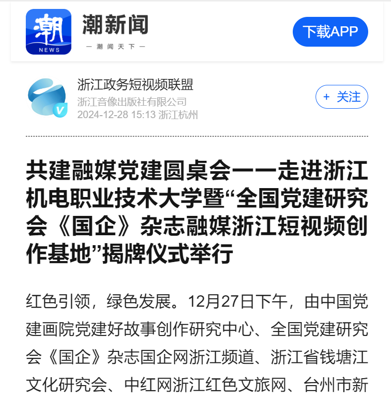 [潮新闻]共建融媒党建圆桌会一一走进浙江机电职业技术大学暨“全国党建研究会《国企》杂志融媒浙江短视频创作基地”揭牌仪式举行