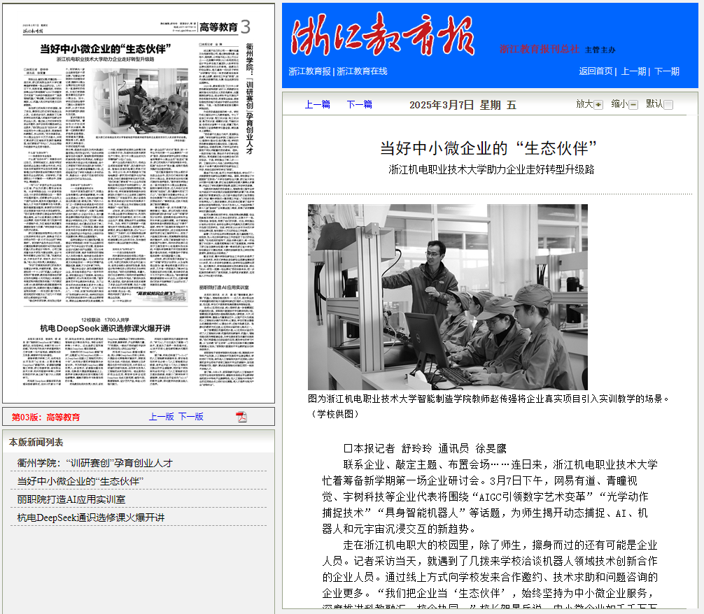 “深受鼓舞、倍感振奋”“加速推进登峰学科建设”“提升职业教育服务区域、支撑产业发展能力”“以教育家精神引领建设高素质专业化教师队伍”……1月21日2025年全省教育系统工作会议暨全面从严治党工作会议在杭召开会议全面部署2025年全省教育工作和全面从严治党工作我省教育系统干部、教师热切关注此次会议一起来听听他们的声音浙江机电职业技术大学党委书记 汤兆武站在新起点新征程,学校要深入探索职业本科教育新路径,探究...
