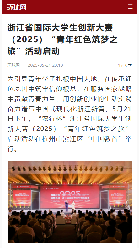 [中国教育在线]时代青年 筑梦前行!“农行杯”浙江省国际大学生创新大赛(2025)“青年红色筑梦之旅”活动启动