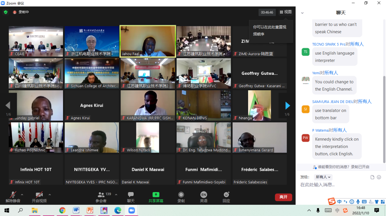 1月10日下午,在教育部国际合作与交流司的支持和指导下,由中国教育国际交流协会和非洲技术与应用型大学与学院协会(ATUPA)共同主办,浙江机电职业技术学院承办的首期非洲职业院校管理人员和骨干教师培训班开班仪式在线上举行。教育部国际合作与交流司亚非处处长杨洲、中国教育国际交流协会副秘书长余有根、非洲技术与应用型大学与学院协会秘书长Jahou Faal女士、我校校长贺星岳出席开班仪式并致辞。来自中国和非洲试点院校的2...