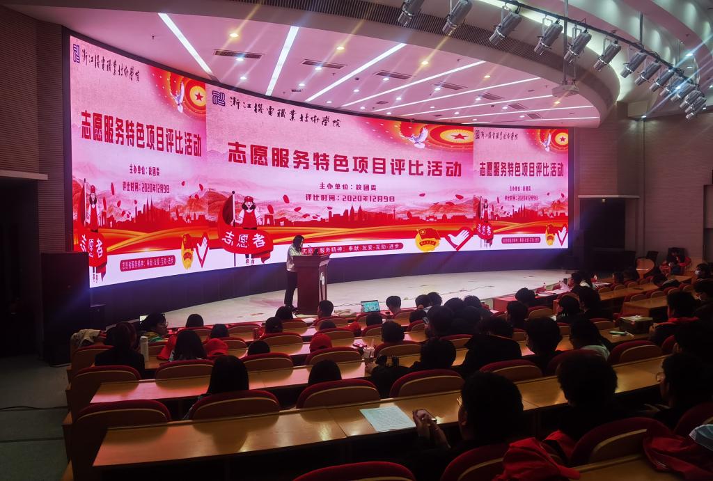 近日,由校团委主办,青年志愿者协会承办的学校志愿服务特色项目评比活动在滨江校区综合楼学术报告厅举行,各团总支共推荐了10支优秀志愿服务项目参评,类别涉及抗击疫情、人口普查、文化传承、科技支农、引导服务等。在特色志愿服务项目评比中,参评项目通过VCR展示、PPT演讲、情景剧表演等方式进行展示。经过激烈的角逐,最终产生6项学校志愿服务特色项目,分别为智慧交通学院“防疫有我,爱卫同行”志愿服务项目、数字商贸学...