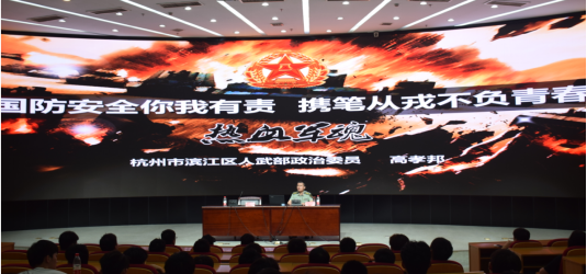 为增强我校学生的国防观念和国防意识,激发家国情怀和使命感,近日校人武部特邀滨江区人武部政委高孝邦在综合楼报告厅为2019级在校大学生举办国防教育专题讲座,讲座由人武部副部长温长胜主持,200余名2019级在校大学生参加。首先,高孝邦政委在讲座中讲到,征集大学生入伍,是党中央、国务院、中央军委着眼国家和军队现代化建设全局作出的重大战略决策,也是大学生健康成长的重要途径。为扎实做好今年大学生征集宣传发动工作,...