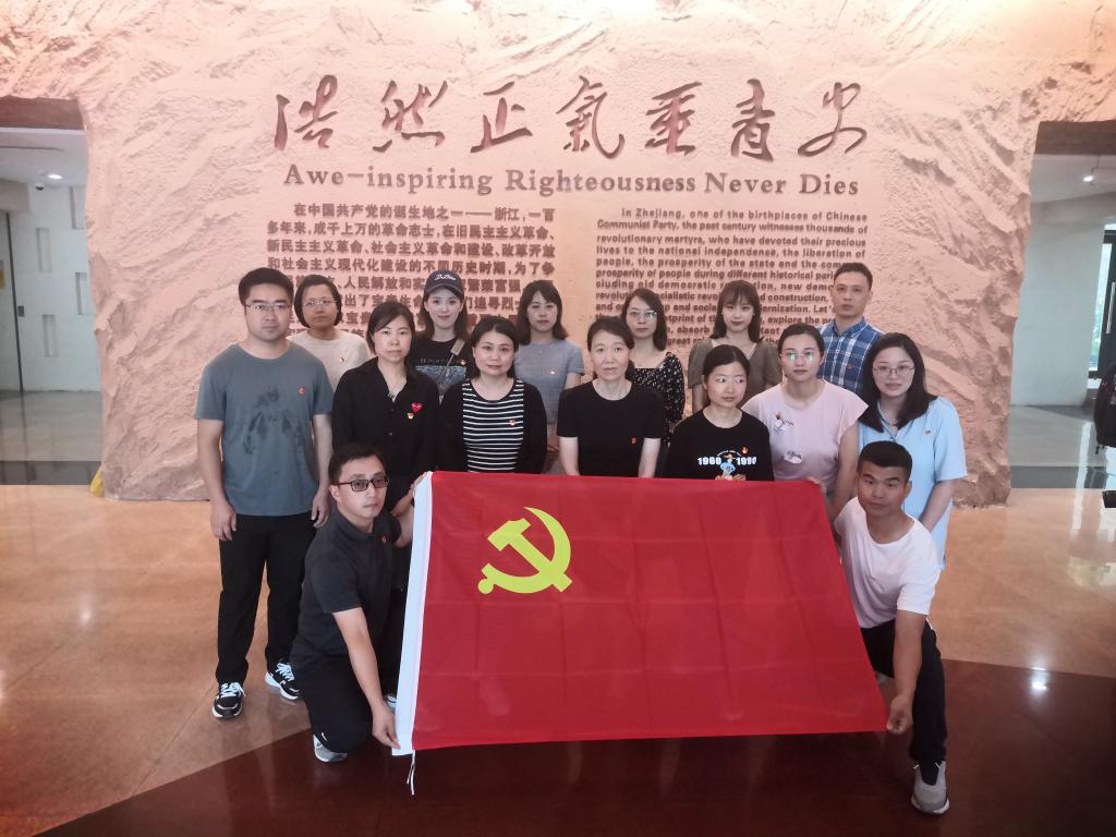 为深入推进党史学习教育活动,6月11日,公共基础教学部党总支组织全体党员参观浙江革命烈士纪念馆,深切缅怀英烈的丰功伟绩和风范,表达对英烈的无限敬仰与哀思。在奏唱《义勇军进行曲》后,支部代表手抬花篮,缓步敬献于纪念碑前。党总支书记项蔓上前仔细整理花篮缎带。全体党员静默肃立,面向纪念碑三鞠躬。在项书记的带领下,全体党员面向党旗,举右手,紧握拳,重温入党誓词,并缓步绕行纪念碑一周。随后,在讲解员的带领下...