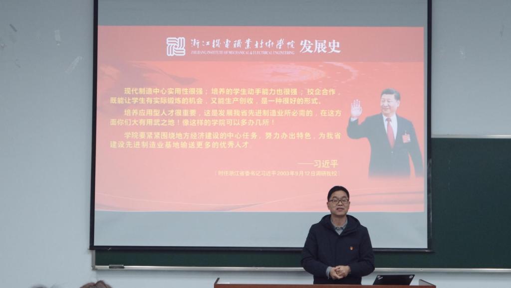 12月30日,现代信息技术学院党总支书记任峰走进学生课堂、登上讲台,围绕“六讲六做”开展宣讲,党史学习教育与全会精神共深化,讲出故事味,聚焦新时代味、教育味,突出浙江味、机电味,学院团总支书记带领团学和班团干部认真学习聆听,反响积极热烈。
