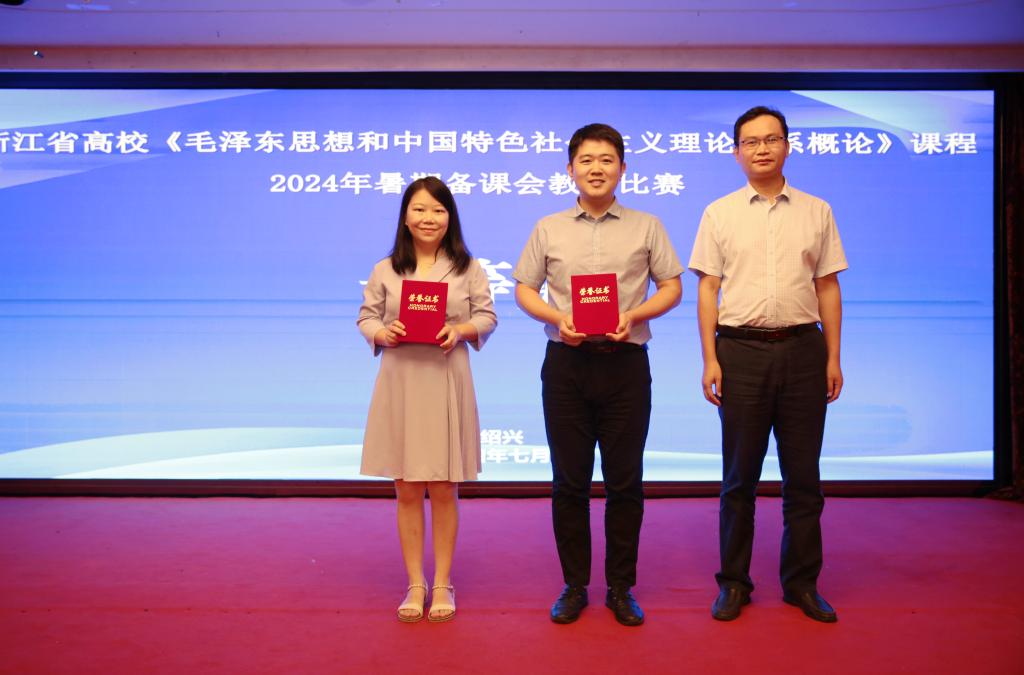 7月7日至10日,浙江省高校《毛泽东思想和中国特色社会主义理论体系概论》课2024年暑期备课会在绍兴市举办,共有来自全省各高校的120余位《毛泽东思想和中国特色社会主义理论体系概论》课专任教师参加了会议。经过紧张而激烈的预赛、决赛,马克思主义学院季铭婧老师在高校本科组教学比赛中斩获一等奖。本次教学比赛决赛通过教育部展示平台面向全国进行现场同步直播,对参赛老师综合素质要求非常高。我校马克思主义学院季铭婧老...