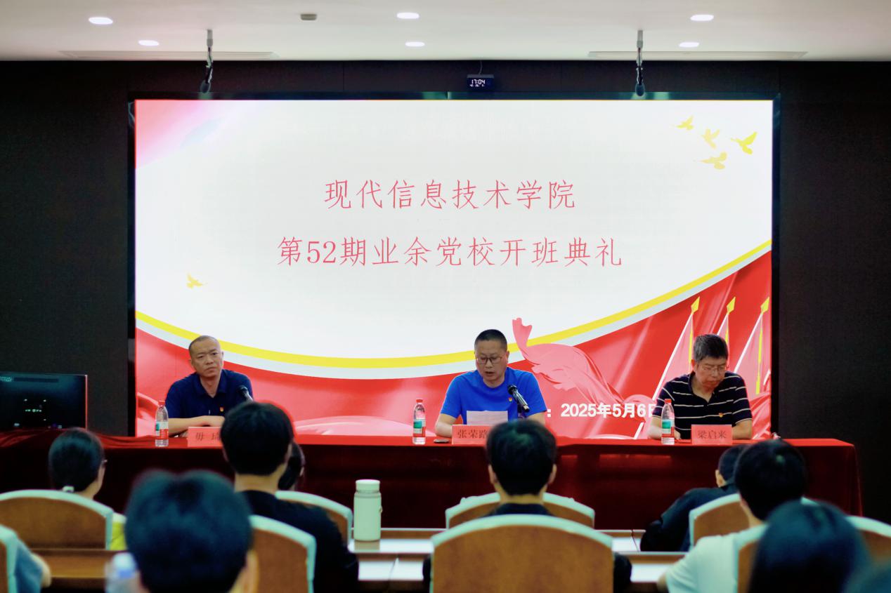 5月6日,现代信息技术学院党总支第52期学生业余党校开班,旨在学习习近平新时代中国特色社会主义思想,深入贯彻中央八项规定精神学习,扎实推进党纪学习教育,引导学生入党积极分子树立崇高理想追求,将作风建设、党纪学习教育融入日常,悉知政治纪律、组织纪律、廉洁纪律、群众纪律、工作纪律、生活纪律,牢牢树立社会主义核心价值观,增强“四个自信”,立志肩负起民族复兴的时代重任。现代信息技术学院党总支书记张荣路,学生党支部书记梁启来、毋琦出席开班典礼,34名业余党校学员参加了此次开班典礼。